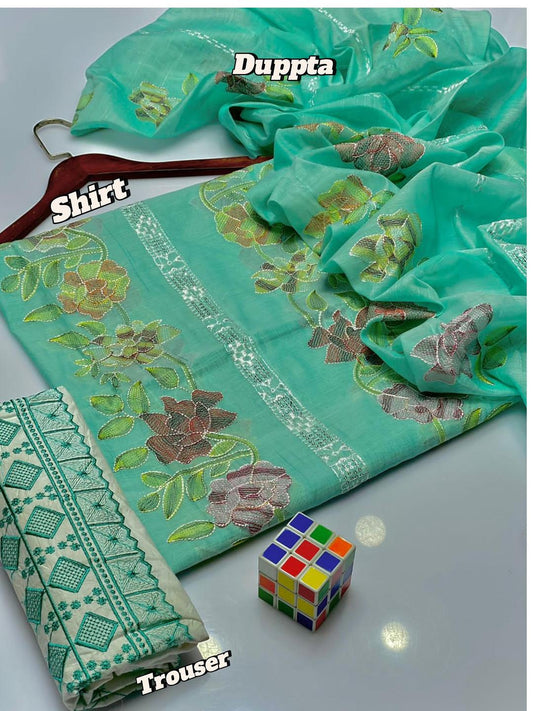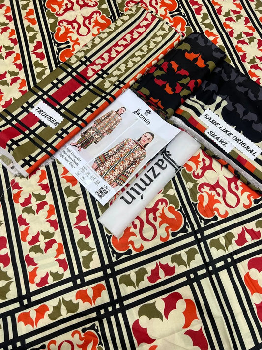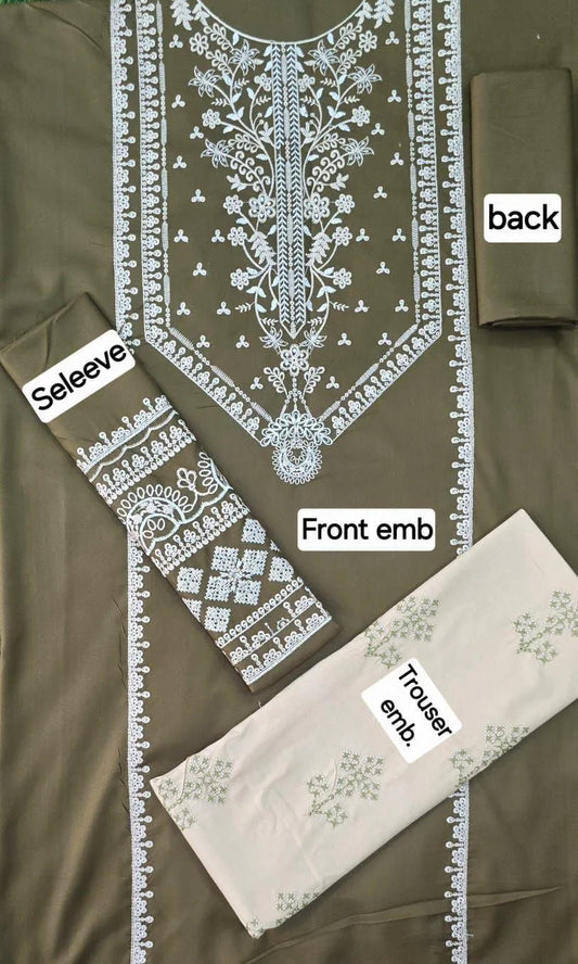 2 Pcs Women's Unstitched Embroidered Suit/ Replica